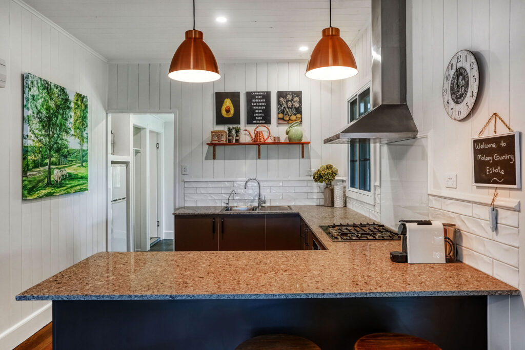 Down a private tree lined driveway, our old Stone Cottage transports you to another world for an unforgettable romantic getaway. The open plan King space will blow you away, from the ancient floor to ceiling stone walls and exposed timber beams to the luxurious bathroom. Featuring couple’s soaker tub set beneath a gorgeous crystal chandelier.